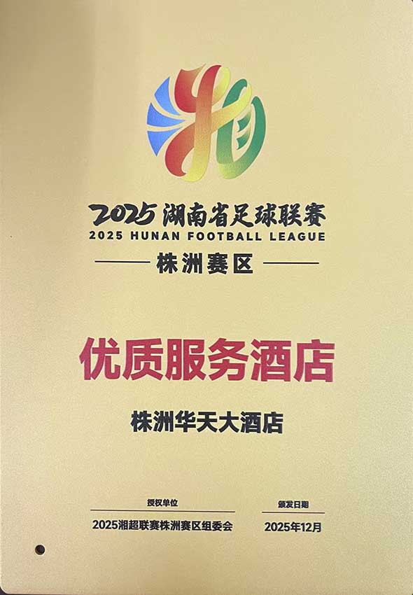 近日,2025年湖南省足球联赛(湘超)株洲赛区赛事落下帷幕,株洲华天大酒店凭借全方位的优质服务与深度的赛事赋能举措,荣获“株洲赛区优质服务酒店”殊荣,这一荣誉既是对酒店服务品质的高度认可,更是对酒店积极践行企业社会责任、助力地方体育文旅发展的充分肯定。
